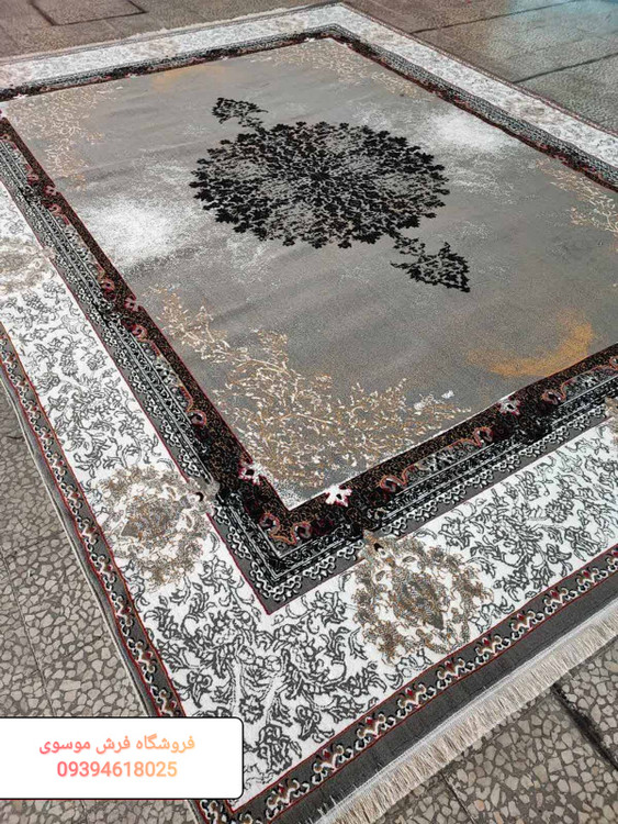 فرش 500 شانه تراکم 1500 طرح آراز نقره ای (ارسال رایگان)