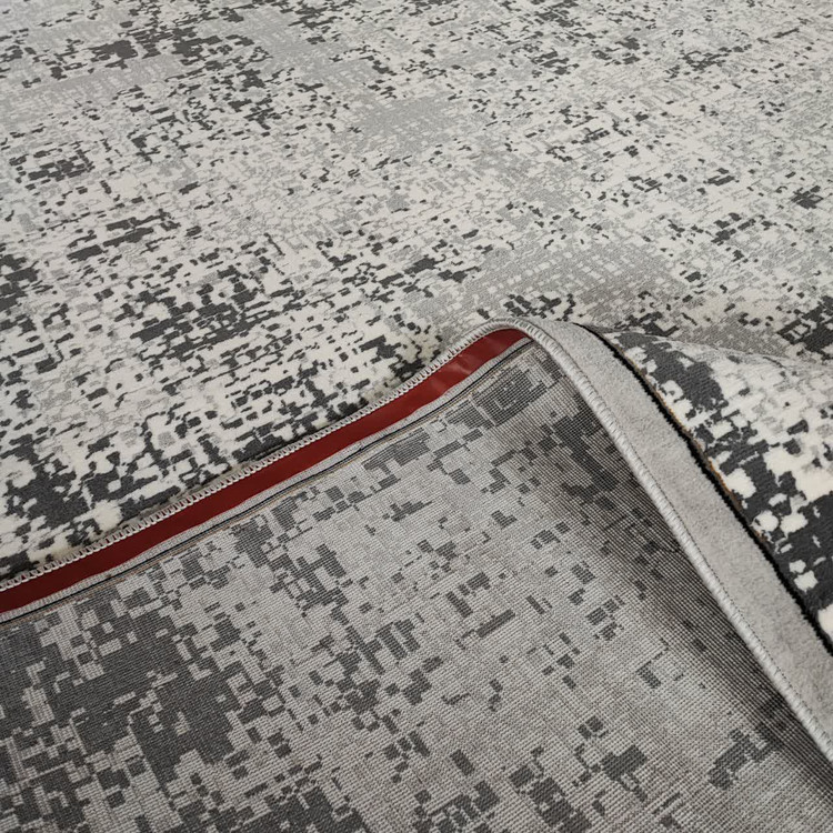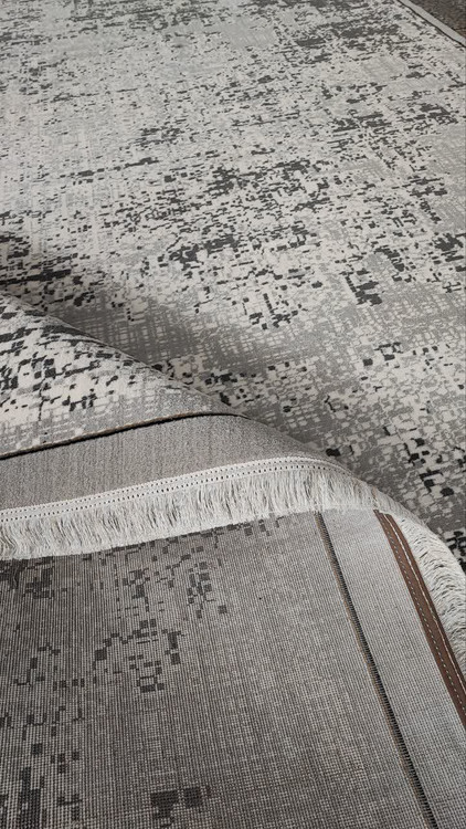 فرش وینتیج طوسی با استفاده از نخ BCF هیتستشده تولید شده و دارای ارتفاع نخ خواب ۹ تا ۱۰ میلیمتر است که نرمی و راحتی مطلوبی را فراهم میکند.