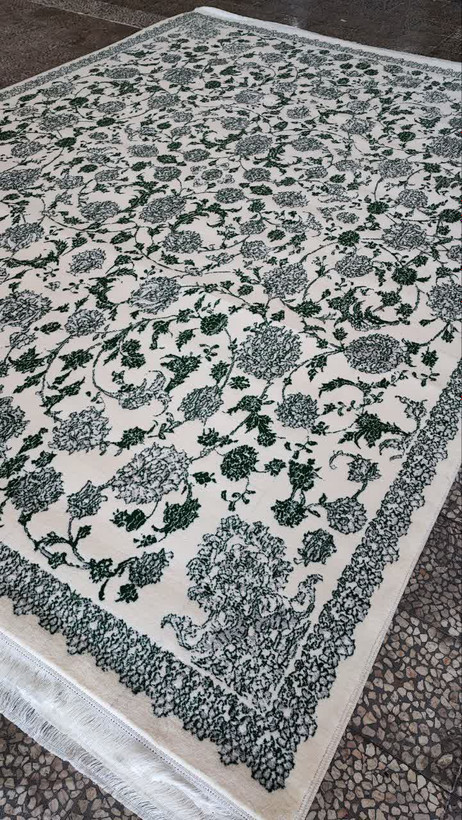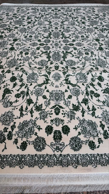 فرش 500 شانه تراکم 1500 کد 01 رنگ سبز کرم (ارسال رایگان)