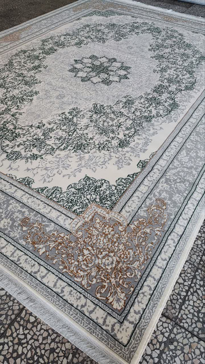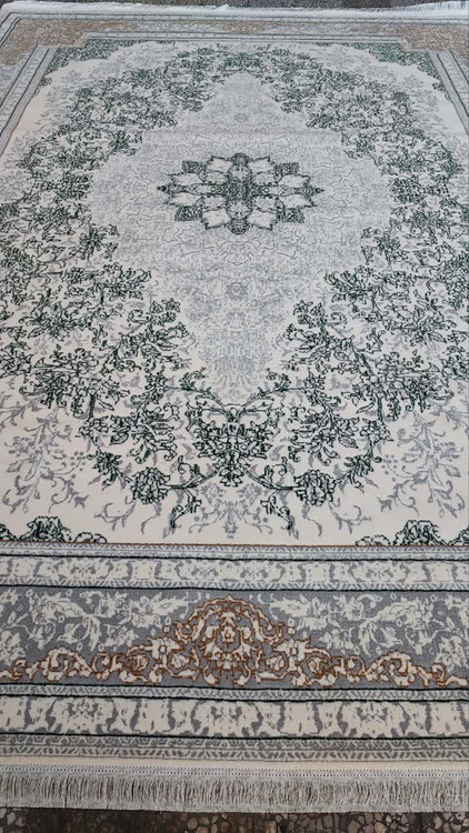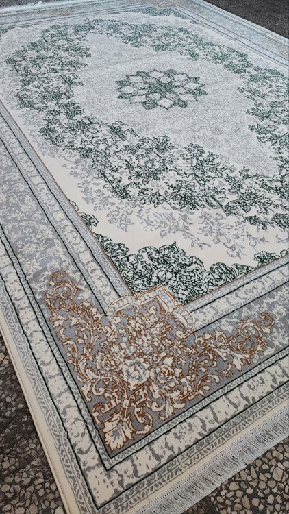 فرش 500 شانه تراکم 1500 کد 04 رنگ سبز کرم (ارسال رایگان)