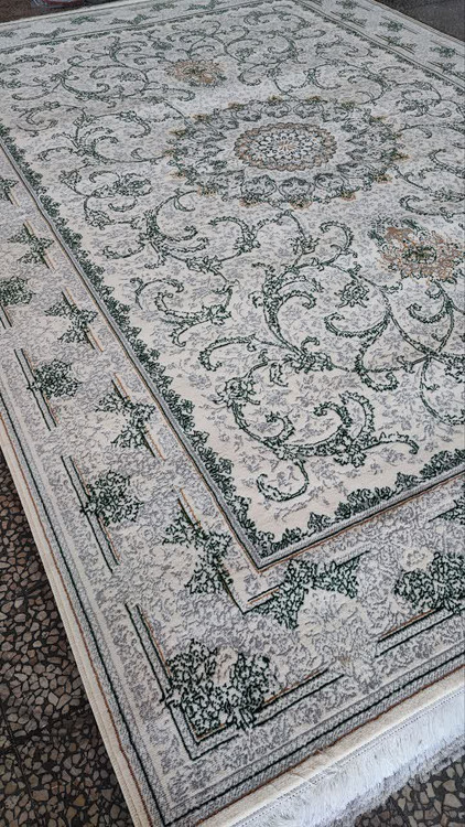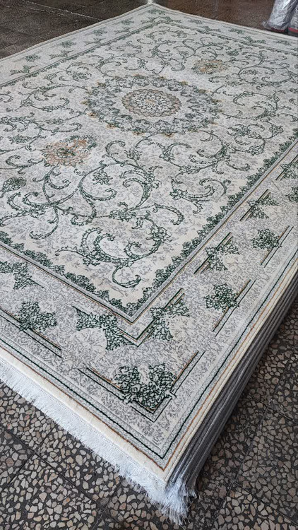فرش 500 شانه تراکم 1500 کد 011 رنگ سبز کرم (ارسال رایگان)