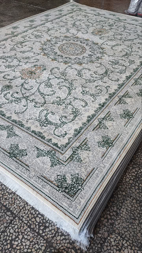 فرش 500 شانه تراکم 1500 کد 011 رنگ سبز کرم (ارسال رایگان)