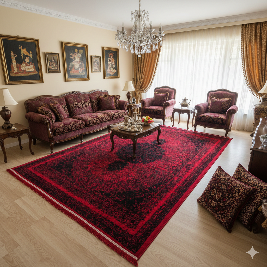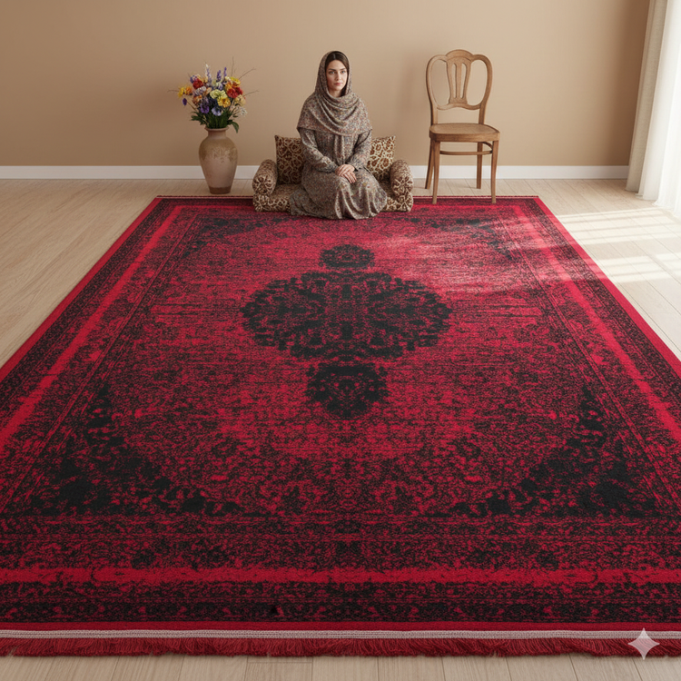 فرش 500 شانه تراکم 1500 رنگ لاکی مدل گلاب (ارسال رایگان)