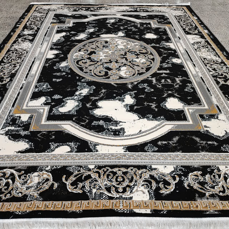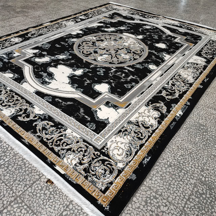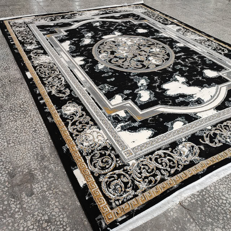 فرش 500 شانه تراکم 1500 طرح ایتالیا مشکی (ارسال رایگان)