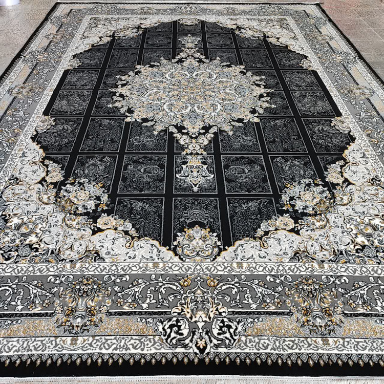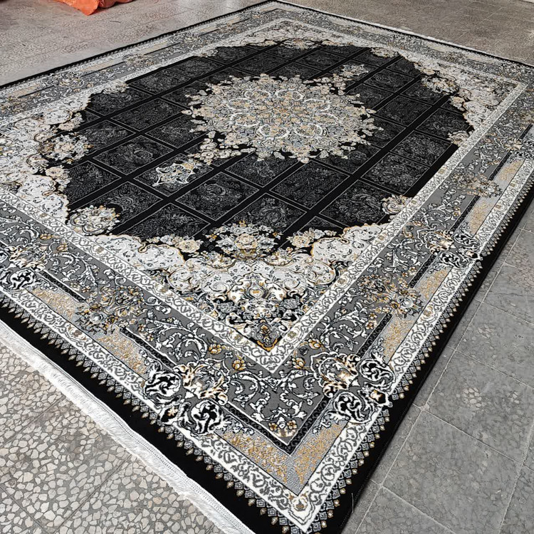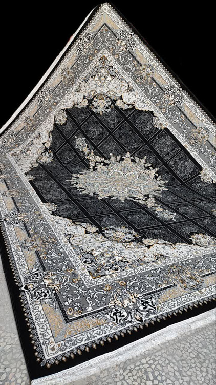 فرش 500 شانه تراکم 1500 طرح رومینا مشکی (+ارسال رایگان)